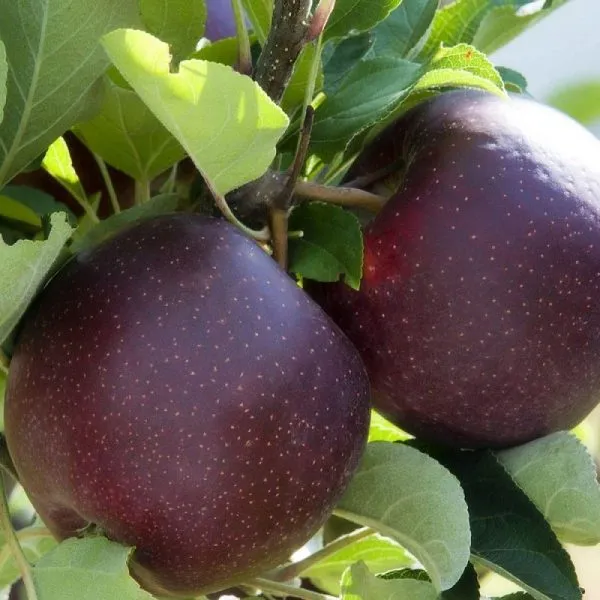 Плоды — настоящая гордость сорта. Они отличаются выровненной, правильной округлой формой и крупным размером, средний вес составляет около 250 граммов. Основная отличительная черта — уникальная окраска кожицы. Это насыщенный, темный карминный (густо-красный) цвет, который в фазе полной зрелости и под воздействием солнечного света может казаться почти черным с бордовым оттенком, что и дало название сорту.