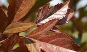 После цветения раскрывается еще одна сильная сторона сорта — листва. Молодые листья имеют свекольно-красный цвет, который к середине лета переходит в темно-зеленый с выраженным бронзово-пурпурным отливом. Именно эта благородная, стабильная окраска листвы высоко ценится в ландшафтном дизайне, так как сохраняется до глубокой осени.