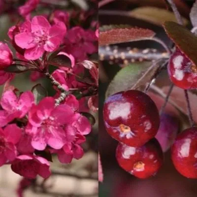 К концу лета и осенью наступает фаза плодоношения: дерево усыпано мелкими, но многочисленными пурпурно-красными яблочками. Эти плоды, имеющие кисловатый вкус, долго не опадают, часто оставаясь на ветвях даже после листопада, что добавляет растению зимнего шарма. Таким образом, сорт выполняет роль акцента в садовой композиции круглый год.