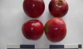 Истинная гордость сорта – его плоды. Яблоки имеют плоско-округлую или округло-коническую форму, они выравненные, с гладкой, слабоблестящей поверхностью. Средний вес плода составляет 150-180 граммов.