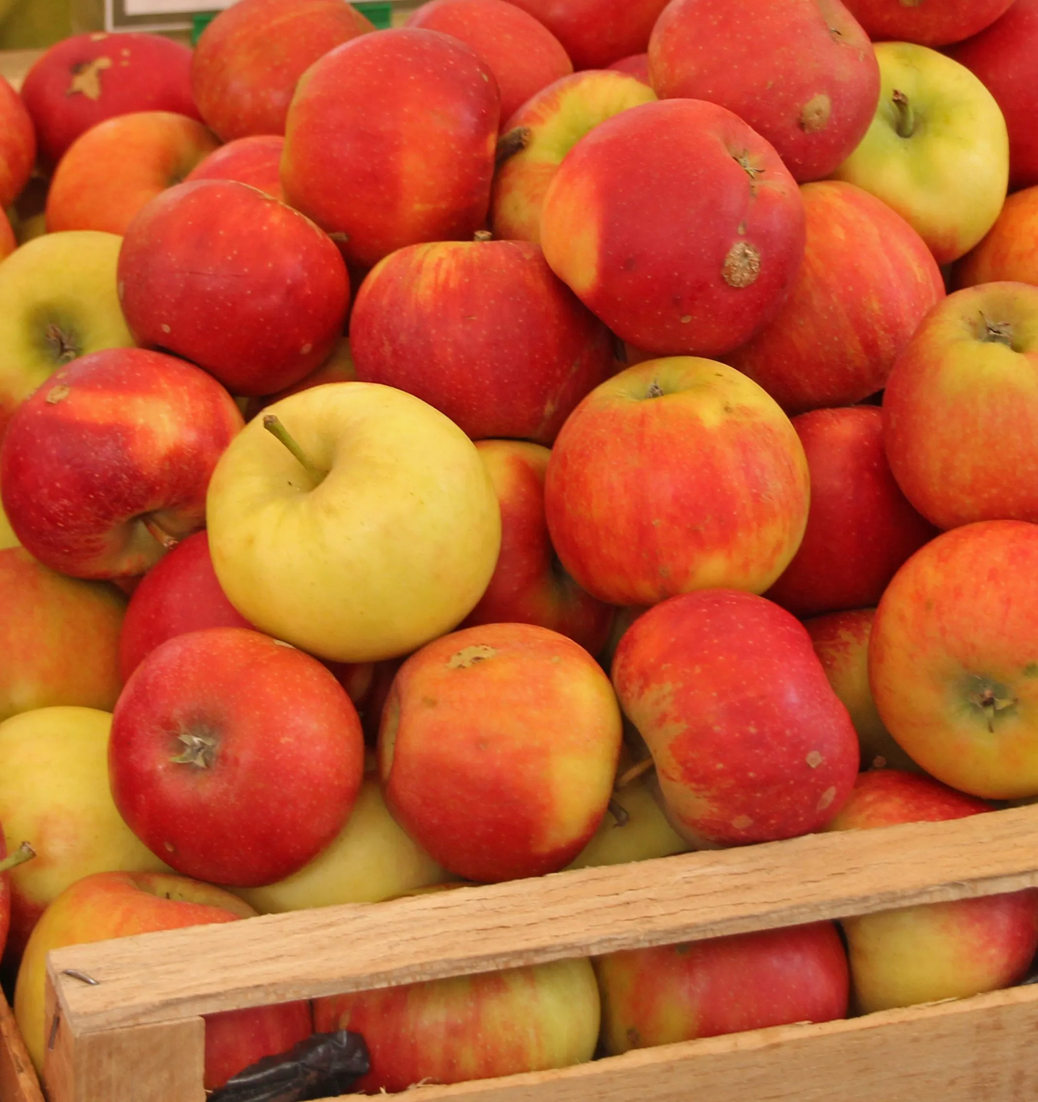 - Первая (на длительное хранение). Идеально целые яблоки с плодоножкой, без механических повреждений, вмятин и признаков болезней.