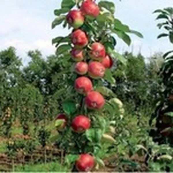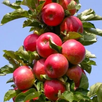 Данный сорт представляет собой типичную колонновидную яблоню, чья главная особенность — уникальный габитус. Вместо раскидистой кроны дерево формирует один центральный проводник (ствол) с очень короткими боковыми веточками (кольчатками и копьецами), отходящими под острым углом. Это создает эффект «колонны», густо облепленной плодами, что и определяет высокую декоративность и компактность.