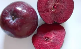 Наиболее необычна мякоть. Она обладает интенсивной, равномерной красной окраской по всему объему, что является редким признаком для яблонь. Консистенция мякоти сочная. Вкусовой профиль уникален: доминирует выраженная кислинка, сопровождаемая отчетливой терпкостью (вяжущим эффектом), что характерно для плодов с высоким содержанием дубильных веществ и антоцианов.