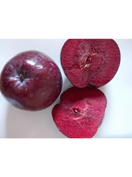 Наиболее необычна мякоть. Она обладает интенсивной, равномерной красной окраской по всему объему, что является редким признаком для яблонь. Консистенция мякоти сочная. Вкусовой профиль уникален: доминирует выраженная кислинка, сопровождаемая отчетливой терпкостью (вяжущим эффектом), что характерно для плодов с высоким содержанием дубильных веществ и антоцианов.