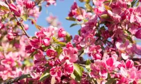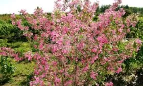 Визуальная привлекательность этой яблони — ее ключевая особенность. Дерево достигает высоты 5-6 метров, формируя раскидистую, часто округлую крону. Весной оно превращается в настоящее украшение сада благодаря обильному цветению. Крупные цветки имеют интенсивный розово-малиновый оттенок, что напрямую связано с происхождением сорта: в его гибридизации участвовала яблоня Недзвецкого, известная именно красной пигментацией всех частей растения.
