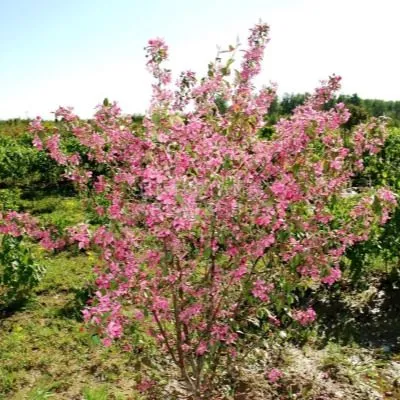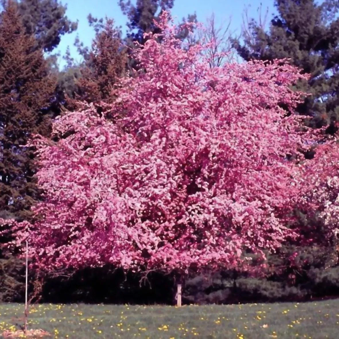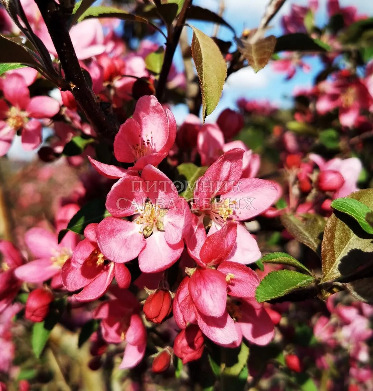 Визуальная привлекательность этой яблони — ее ключевая особенность. Дерево достигает высоты 5-6 метров, формируя раскидистую, часто округлую крону. Весной оно превращается в настоящее украшение сада благодаря обильному цветению. Крупные цветки имеют интенсивный розово-малиновый оттенок, что напрямую связано с происхождением сорта: в его гибридизации участвовала яблоня Недзвецкого, известная именно красной пигментацией всех частей растения.