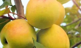 Главная отличительная черта сорта – крупные, выравненные плоды массой 140-180 граммов, что является выдающимся показателем для позднелетней яблони. Их классическая округло-приплюснутая форма и привлекательная светло-желтая, «восковая» окраска делают урожай очень товарным.