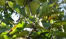 В регионах с интенсивной инсоляцией, особенно на юге, плоды, висящие на периферии кроны и полностью открытые солнцу, могут получать солнечные ожоги. На кожице появляются темные, вдавленные пятна, которые в дальнейшем могут поражаться гнилями.
