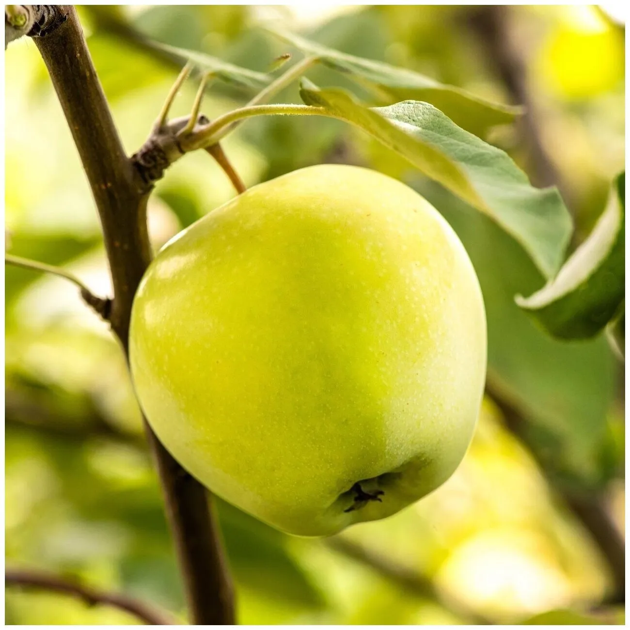 Определить оптимальный момент для сбора можно по двум признакам. Основной окрас плодов меняется со светло-зеленого на кремово-желтый, но не на интенсивно-желтый. Второй признак — плодоножка должна легко отделяться от плодовой веточки (плодушки) при подъеме и повороте яблока.