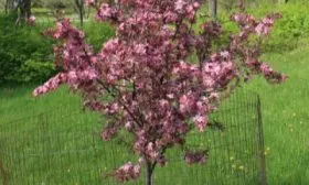 Листовой аппарат плотный, листья темно-зеленые с выраженным глянцевым блеском. Эта текстура создает эффект игры света, делая крону объемной и нарядной даже в пасмурные дни. Весеннее цветение представляет собой отдельное зрелище. Бутоны, имеющие насыщенный розовый цвет, раскрываются в многочисленные цветки нежно-розового или белого оттенка, которые покрывают дерево плотным облаком. Их нежный аромат соответствует описанию сорта — он приятный и ненавязчивый, привлекающий насекомых-опылителей.