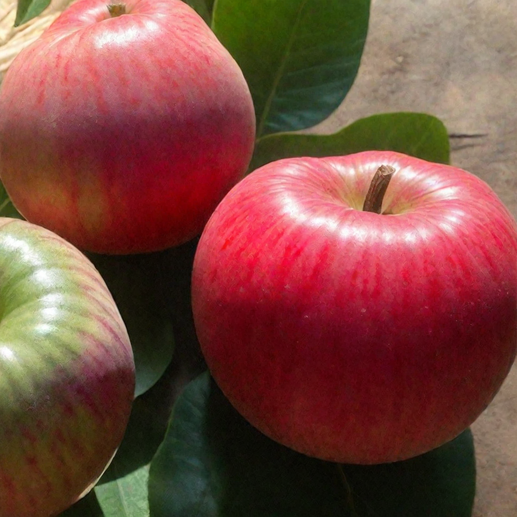 Главная отличительная черта сорта — его плоды. Яблоки имеют средний или крупный размер, их масса варьируется от 80 до 130 граммов. Форма неоднородная: она уплощённая, с конической верхней частью и чётко выраженными рёбрами, что часто приводит к лёгкой неравнобокости.