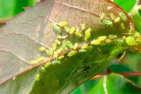 - Зелёная тля. Это опасный вредитель, отличающийся высокой скоростью размножения. Он способен за несколько дней уничтожить почти все листья, лишая растение питания и возможности фотосинтезировать. Питаясь соками молодых веток, тля их убивает.