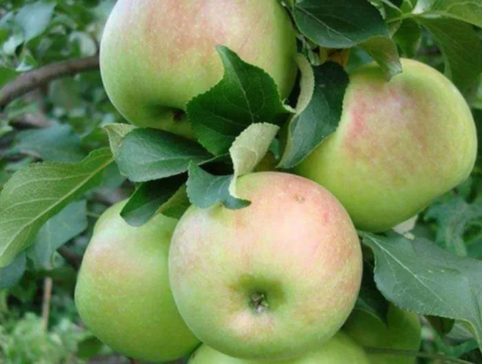 Плоды крупные, одномерные и имеют правильную уплощенно-округлую форму. Основная окраска кожицы — светло-зеленая или зеленовато-желтая. Покровный румянец размытый, темно-красный, с неясными штрихами и покрывает большую часть яблока, что придает ему очень нарядный вид.