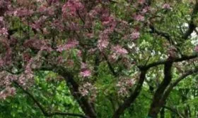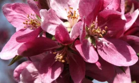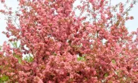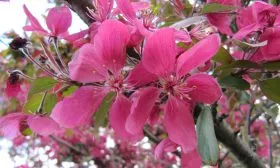 Истинный парад красоты начинается весной. В период цветения дерево буквально усыпано цветками. Бутоны имеют насыщенную розово-пурпурную окраску, а распустившиеся цветы – нежно-розовые или бело-розовые, крупные, часто полностью скрывающие ветви.
