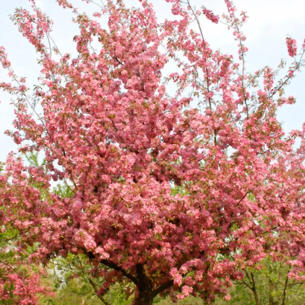 Истинный парад красоты начинается весной. В период цветения дерево буквально усыпано цветками. Бутоны имеют насыщенную розово-пурпурную окраску, а распустившиеся цветы – нежно-розовые или бело-розовые, крупные, часто полностью скрывающие ветви.