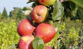 Мякоть сочная, плотной консистенции, что является хорошим признаком для последующего хранения и транспортировки. Вкус выраженный, кисло-сладкий, с гармоничным балансом. Внешний вид дерева, усыпанного крупными красными яблоками на фоне практически отсутствующей кроны, создает высокий декоративный эффект на протяжении всего периода созревания.
