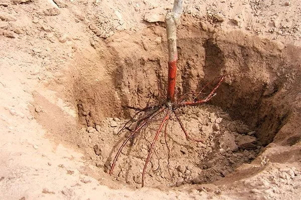 - Саженец должен быть с развитой корневой системой, без повреждений, с 2-3 основными скелетными ветвями. Перед посадкой укоротите корни до 30 см и замочите в воде или глиняной болтушке на 2-3 часа.