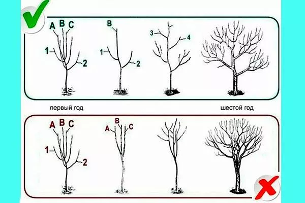 - При вырезании молодых побегов оставляйте только самые сильные и растущие вверх под углом к стволу, остальные удаляйте.