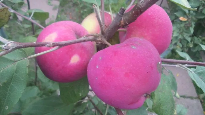 | Окраска | Темно-красный размыто-полосатый румянец на большей части плода | Высокая декоративность. Яблоки созревают неодновременно, что продлевает период их эстетичной презентации на дереве. |
