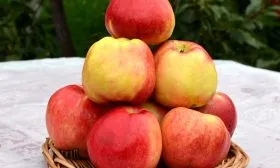 Плоды – главная гордость этого сорта. Они одномерные, крупные, массой 130-150 граммов. Форма классическая, уплощенно-округлая (приплюснутая). Основная окраска кожицы в момент съемной зрелости (середина сентября) зеленоватая, а в состоянии потребительской зрелости (после дозаривания) становится зеленовато-желтой.