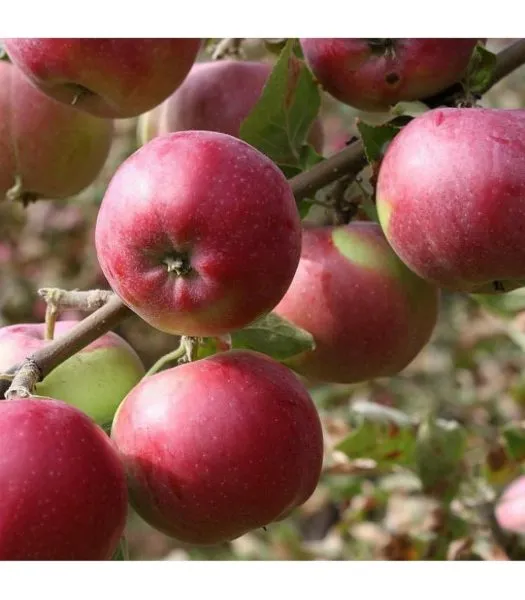 Покровный окрас – это яркий, привлекательный, размыто-крапчатый румянец красного цвета, покрывающий большую часть яблока. Именно по этому нарядному «румянцу» сорт легко узнать среди других зимних яблонь. Такой тип окраски менее подвержен солнечным ожогам по сравнению со сплошным румянцем.
