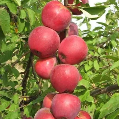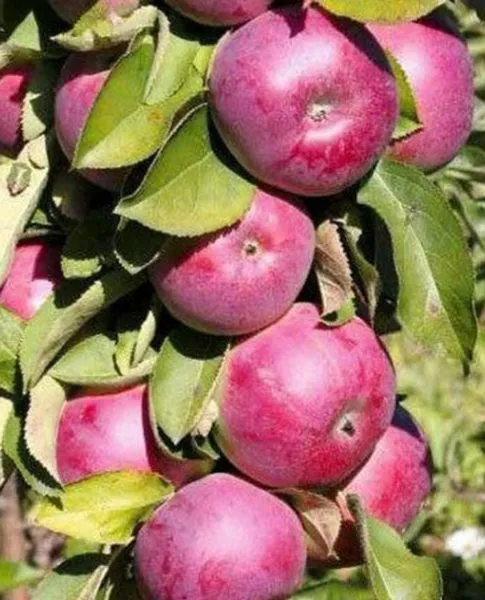 Плоды — главная гордость сорта. Они крупные, массой 150-200 граммов, имеют правильную шаровидную форму. Основной окрас — насыщенный красный, который покрывает почти всю поверхность яблока. Мякоть сочная, мелкозернистая, белого цвета.