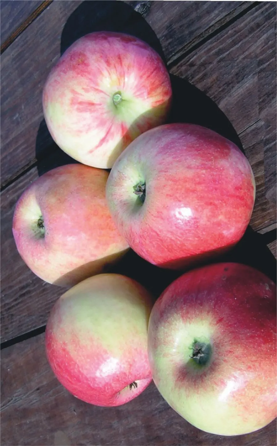 Внешне плоды должны достичь заявленного крупного размера и характерной конической формы. Кожица приобретает выраженный маслянистый оттенок и покрывается сизым восковым налетом, который нельзя стирать. Плодоножка при аккуратном повороте яблока вверх должна легко отделяться от плодушки (укороченной плодовой веточки).