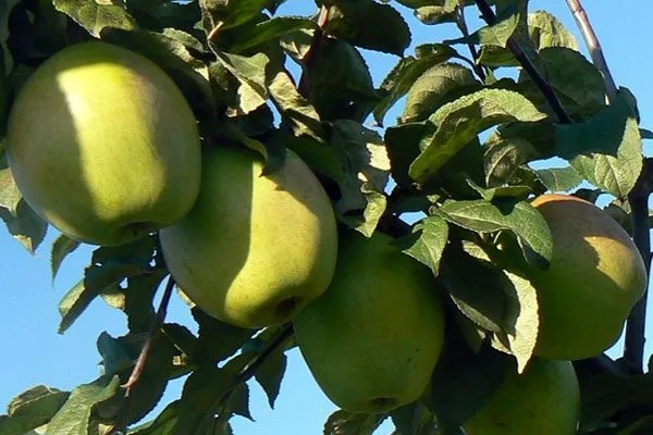 - В процессе созревания кожица яблок становится гладкой, с блеском и средней толщиной, не хрупкой, сначала с зелёным, затем светло-жёлтым, а ещё позже тёпло-жёлтым цветом.