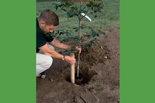 - Для уверенности можно установить два или более таких стержней, главное, чтобы они не ограничивали рост растения. Их следует извлечь не ранее чем через 5 лет после высадки.
