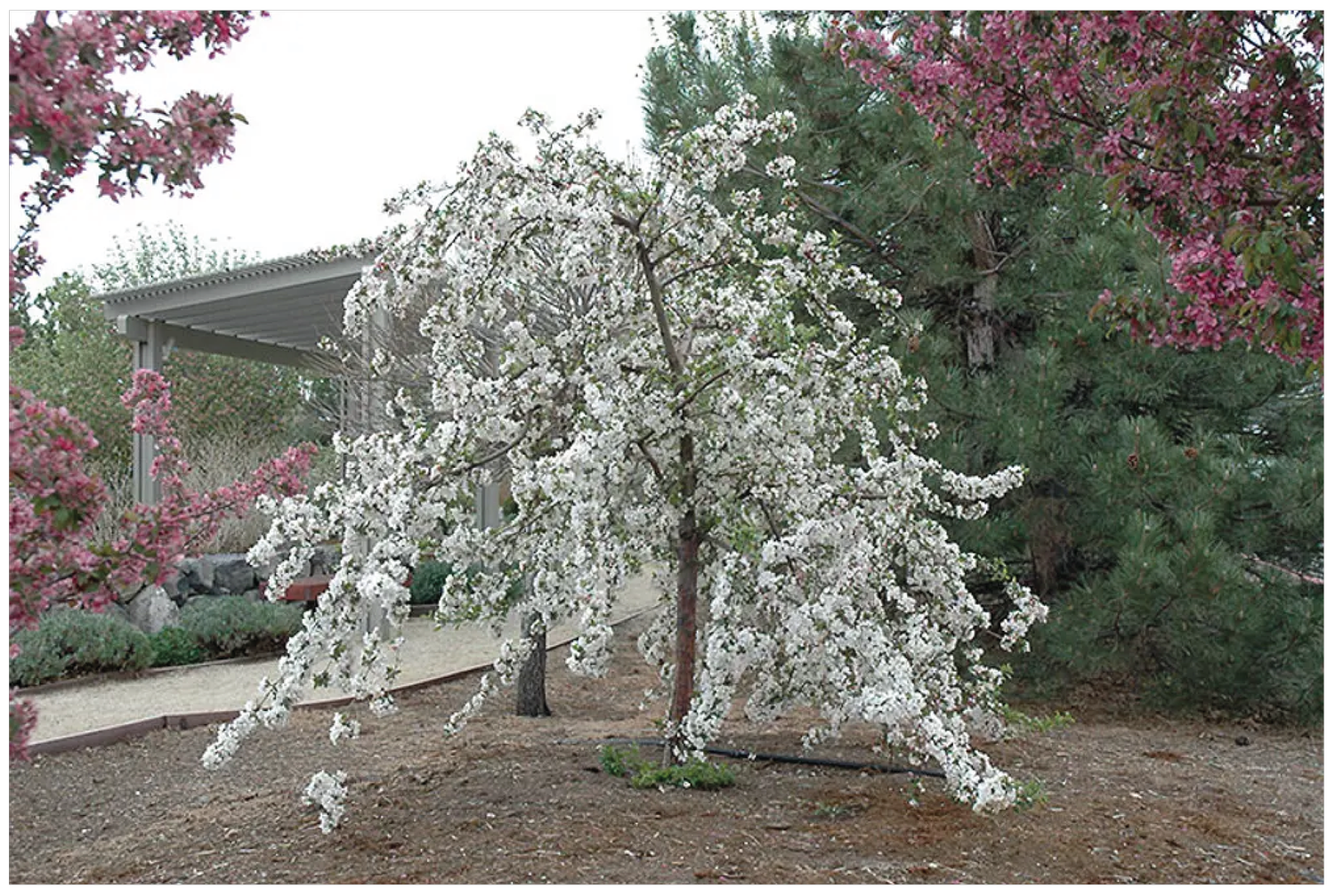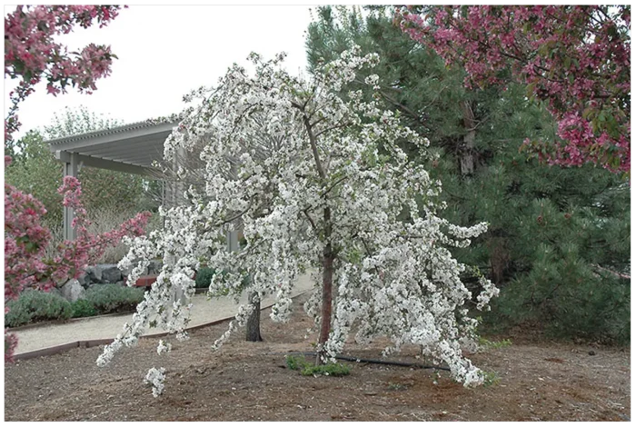 На семенном (сильнорослом) подвое дерево реализует максимальный потенциал роста, достигая 4-5 метров. Длинные гибкие ветви будут ниспадать с большой высоты, создавая мощный каскад. Такой вариант подходит для солитерной (одиночной) посадки на просторном участке. Однако для большинства частных садов, особенно небольших, такая высота может быть избыточной.