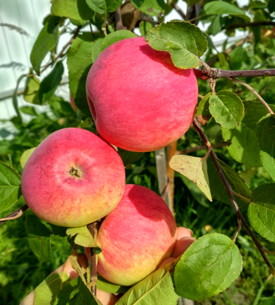 - Яблоко легко отделяется от плодоножки при подъеме и легком повороте (не нужно тянуть с усилием).