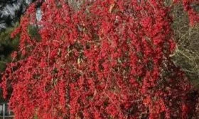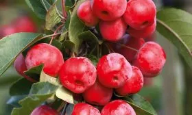 Плоды отличаются характерной немного приплюснутой формой и равномерной светло-красной окраской. Их небольшой размер компенсируется невероятным обилием, что в совокупности и создает тот самый потрясающий визуальный эффект.