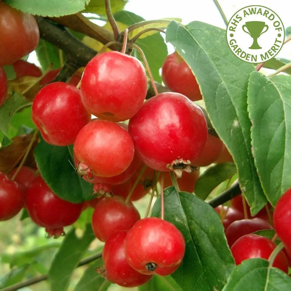 Главная особенность сорта — невероятно эффектное и продолжительное плодоношение, превращающее дерево в живой букет из сотен алых яблочек. Плоды, несмотря на миниатюрный размер и вяжущий кислый вкус, делают эту яблоню настоящим акцентом в осенне-зимнем саду. Они плотно покрывают ветви и, благодаря прочному прикреплению, могут держаться на дереве очень долго, часто до середины зимы, привлекая птиц и создавая яркий цветовой акцент на фоне унылого пейзажа.