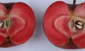 Плоды сорта Редлав Калипсо действительно выделяются на фоне многих других. Их главная отличительная черта — интенсивная красная окраска не только кожицы, но и мякоти. Цвет мякоти может варьироваться от розово-красного до насыщенного малинового, иногда со светлыми прожилками.