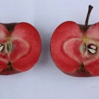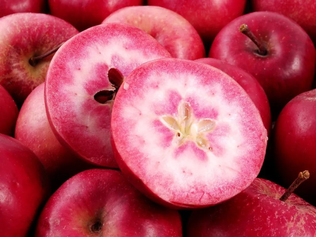 Плоды сорта Редлав Калипсо действительно выделяются на фоне многих других. Их главная отличительная черта — интенсивная красная окраска не только кожицы, но и мякоти. Цвет мякоти может варьироваться от розово-красного до насыщенного малинового, иногда со светлыми прожилками.