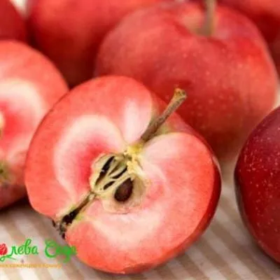 Основной сюрприз раскрывается при разрезании. Мякоть имеет насыщенный красный цвет, интенсивность которого может варьироваться от розового до малинового. Эта пигментация равномерно распределена по всей мякоти.
