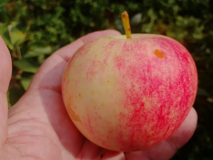 Визуально плоды привлекают внимание окраской: теплый желтый основной фон покрыт рисунком из размытых полос и ярких карминовых штрихов. Но главные отличия раскрываются при тактильном и вкусовом восприятии.