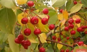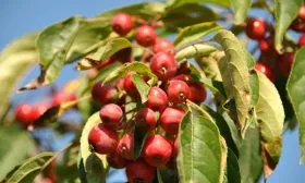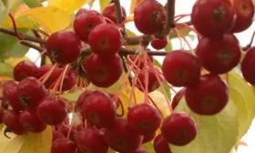 Урожайность высокая: в период плодоношения тонкие ветви густо усыпаны гроздьями ярких плодов, создавая исключительно декоративный вид. Однако их потребительские качества специфичны.