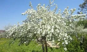 | Среднерослый (клоновый, например ММ106) | Высота 4-5 м. Корневая система развитая, обеспечивает хорошую якорность (устойчивость). Плодоношение на 4-5 год. | Умеренно сдерживает рост, формируя крепкое, самостоятельно устойчивое дерево. Менее требователен к частому поливу по сравнению с карликовыми подвоями. | Хороший выбор для открытых, ветреных участков, где нежелательна установка опор. Даёт дерево, по габаритам близкое к традиционному, но с более ранним плодоношением. |