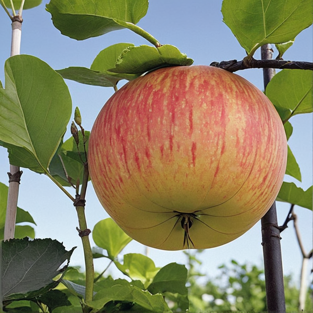 Для полукарликовых подвоев (ММ106) часто требуется установка опоры в первые годы, пока дерево не разовьёт достаточную устойчивость. Это особенно актуально при высоком урожае крупных плодов, которые могут создавать серьёзную парусность и нагрузку на молодой ствол.