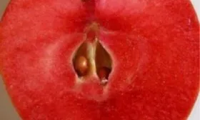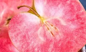 Главная отличительная черта ждет внутри. Мякоть обладает интенсивной красной окраской, распространяющейся примерно на 80% своего объема. Это не отдельные прожилки или пятна, а равномерный, насыщенный пигмент, что сразу выделяет сорт на фоне многих других красномясых гибридов. Такая особенность напрямую влияет на использование яблок — они придают продуктам переработки, таким как соки, пюре или желе, красивый розово-красный оттенок без добавления красителей.