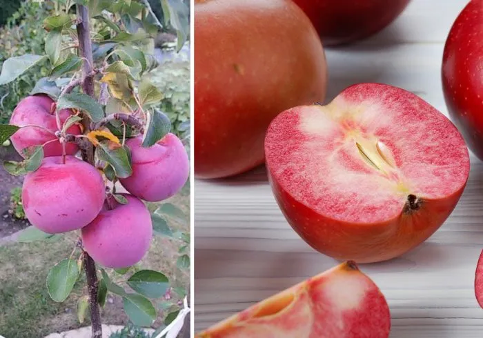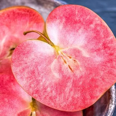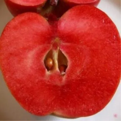 Главная отличительная черта ждет внутри. Мякоть обладает интенсивной красной окраской, распространяющейся примерно на 80% своего объема. Это не отдельные прожилки или пятна, а равномерный, насыщенный пигмент, что сразу выделяет сорт на фоне многих других красномясых гибридов. Такая особенность напрямую влияет на использование яблок — они придают продуктам переработки, таким как соки, пюре или желе, красивый розово-красный оттенок без добавления красителей.