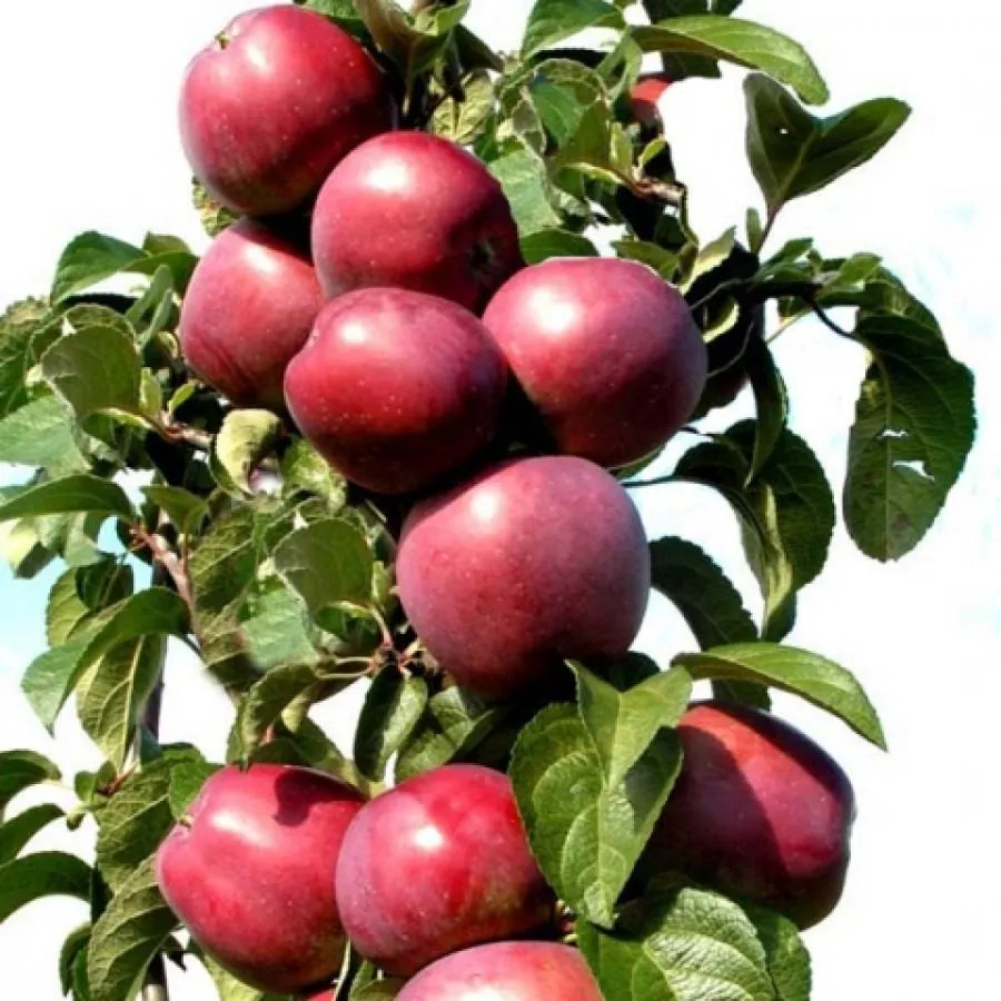 Габитус (внешний облик) этого сорта кардинально отличается от привычных раскидистых яблонь. Дерево формирует стройную, плотную колонну, что является его ключевой особенностью. Высота, как правило, достигает 3.5-4 метров, при этом ширина кроны не превышает 40-50 см. Классических скелетных ветвей, отходящих под широким углом, практически нет. Плодоношение сосредоточено на многочисленных коротких плодовых образованиях (кольчатках и копьецах), равномерно расположенных вдоль центрального проводника.