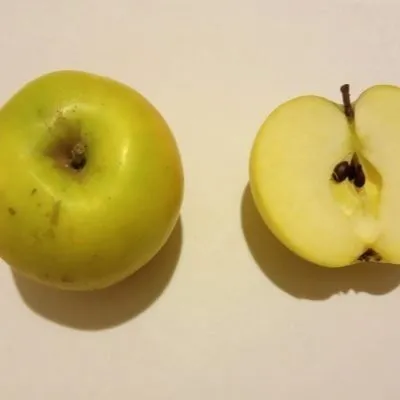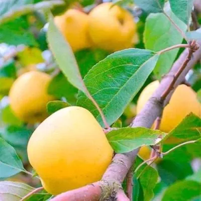 Именно плоды — визитная карточка сорта. Они привлекают внимание своей яркой, солнечной окраской. Основной цвет кожицы — чистый, интенсивный желтый, как у лимона. На солнечной стороне часто проявляется нежный розовато-оранжевый румянец, который делает яблоко особенно нарядным.