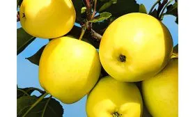 Плоды имеют средний размер и классическую округлую форму. Основная окраска кожицы — лимонно-желтая. На солнечной стороне может проявляться едва заметный, размытый красно-розовый румянец, но часто яблоки остаются полностью желтыми, что и дало сорту название.