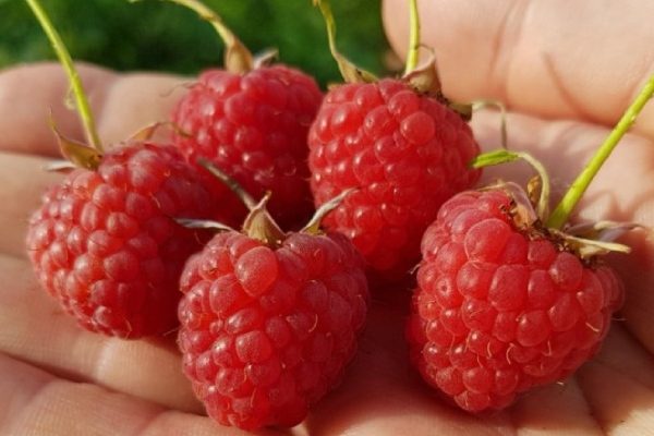 Удлинённо-конусовидные плоды с округлением на конце окрашены в малиновый оттенок. У них средние размеры, масса одной ягоды составляет 2-2,5 г. Мякоть нежная и сочная, с насыщенным вкусом и ароматом.