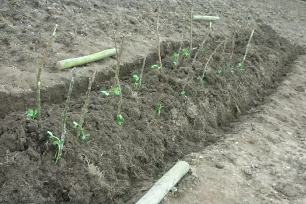 - Растения разместите в траншеи с шагом 30 см и засыпьте плодородной землёй.