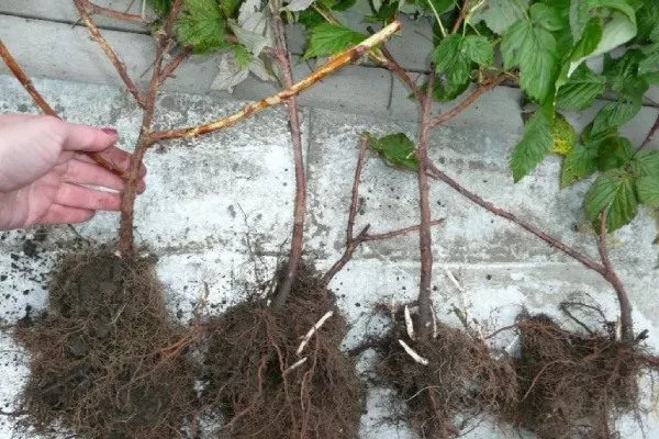 - Используйте саженцы высотой около 20 см. Длинные ветви малины обрежьте до указанных размеров.