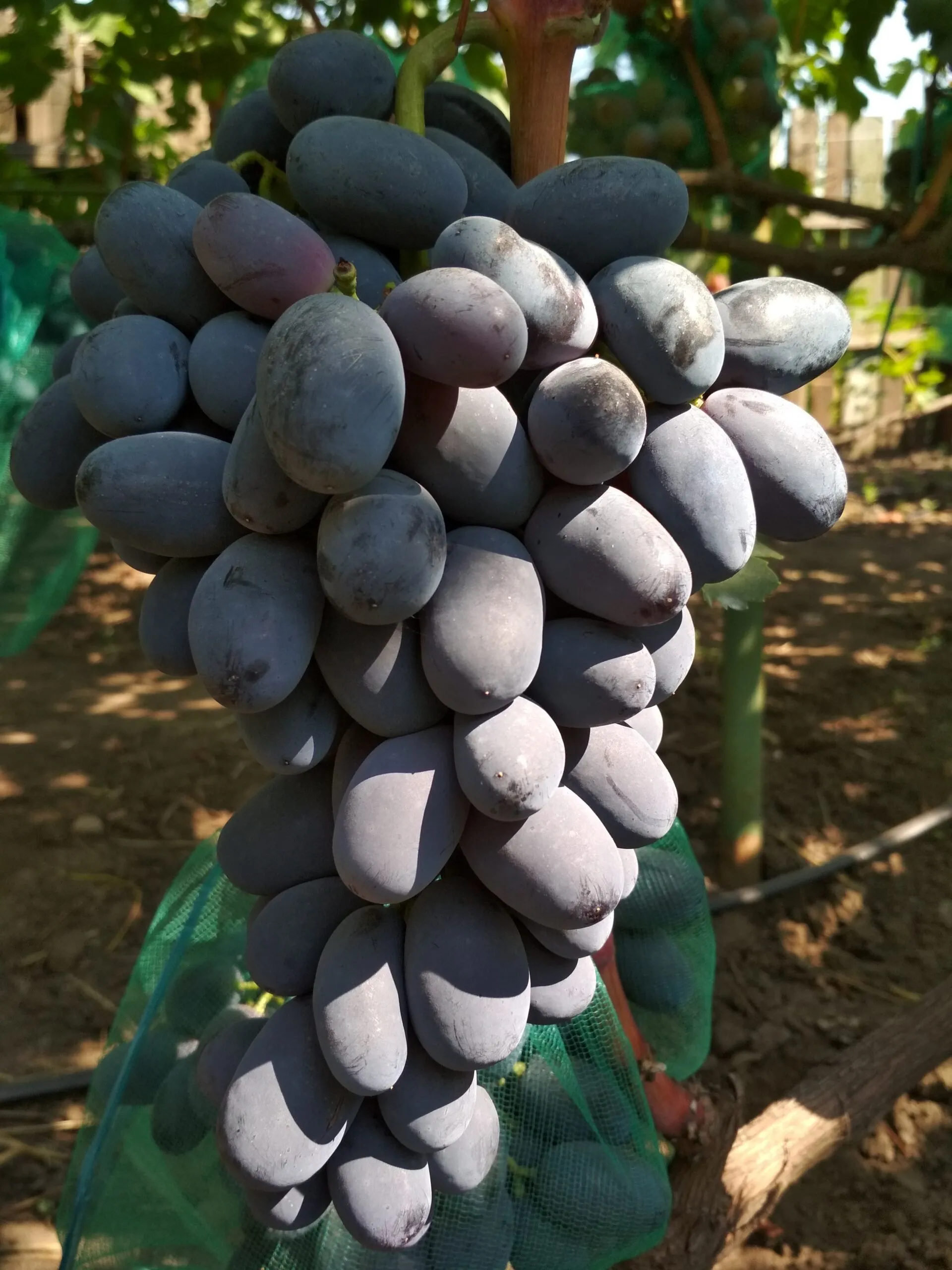 Главная отличительная черта сорта — крупная ягода удлиненно-конической, часто пальчиковой формы. Ее средний вес достигает 20 граммов. При полном созревании окраска становится насыщенной сине-черной с обильным пруиновым налетом. Этот естественный восковой слой выполняет защитную функцию, оберегая кожицу от механических повреждений и испарения влаги.
