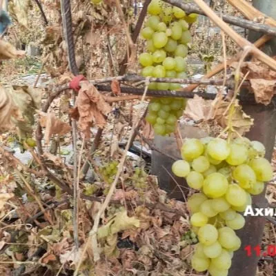 Однолетние побеги отличаются хорошим вызреванием по всей длине. Этот параметр критически важен, так как именно из хорошо вызревшей лозы формируются плодовые почки будущего сезона, а сама лоза лучше переносит зимние морозы. Цветок у Ахиллеса функционально обоеполый, что обеспечивает стабильное и полноценное опыление собственной пыльцой даже в сложных погодных условиях. Садоводу не требуется подбирать и высаживать дополнительные сорта-опылители, что упрощает планировку виноградника.